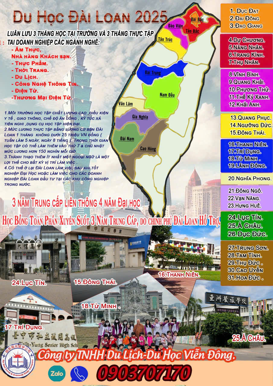 Du học Đài Loan luôn cố gắng, hỗ trợ mọi điều kiện thuận lợi nhất tới các em học sinh, sinh viên. Để giúp cho từng học viên có được sự tự tin thông qua giáo trình dạy và học ngoại ngữ dễ dàng nhất. Giúp cho các em học sinh, sinh viên Việt Nam có cơ hội học tập và làm việc tại một trong những con rồng của châu Á.